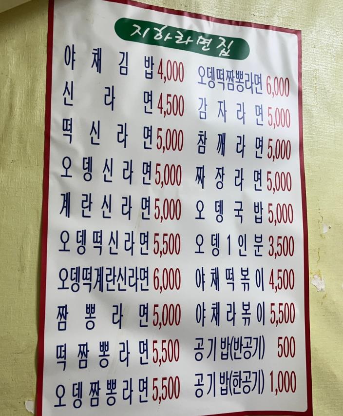 ❓ 무교동 지하라면집의 인기 메뉴는 무엇인가요?