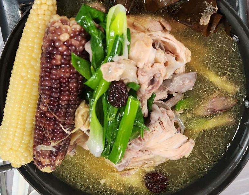 자급자족의 맛을 추구하는 철원평야가든에서는 닭도 직접 기르고 있습니다. 이렇게 정성스럽게 기른 닭으로 만든 백숙은 일반 백숙과는 차원이 다른 맛을 선사하며, 연잎밥과 함께 먹으면 그 풍미가 더욱 깊어집니다.